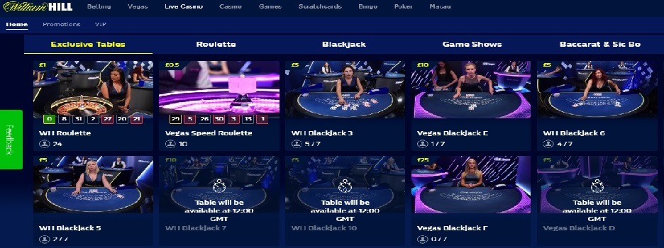 - 52 Blackjack Tische: Das beliebte Kartenspiel gibt es bei William Hill in sämtlichen Versionen mit unterschiedlichen Limits.